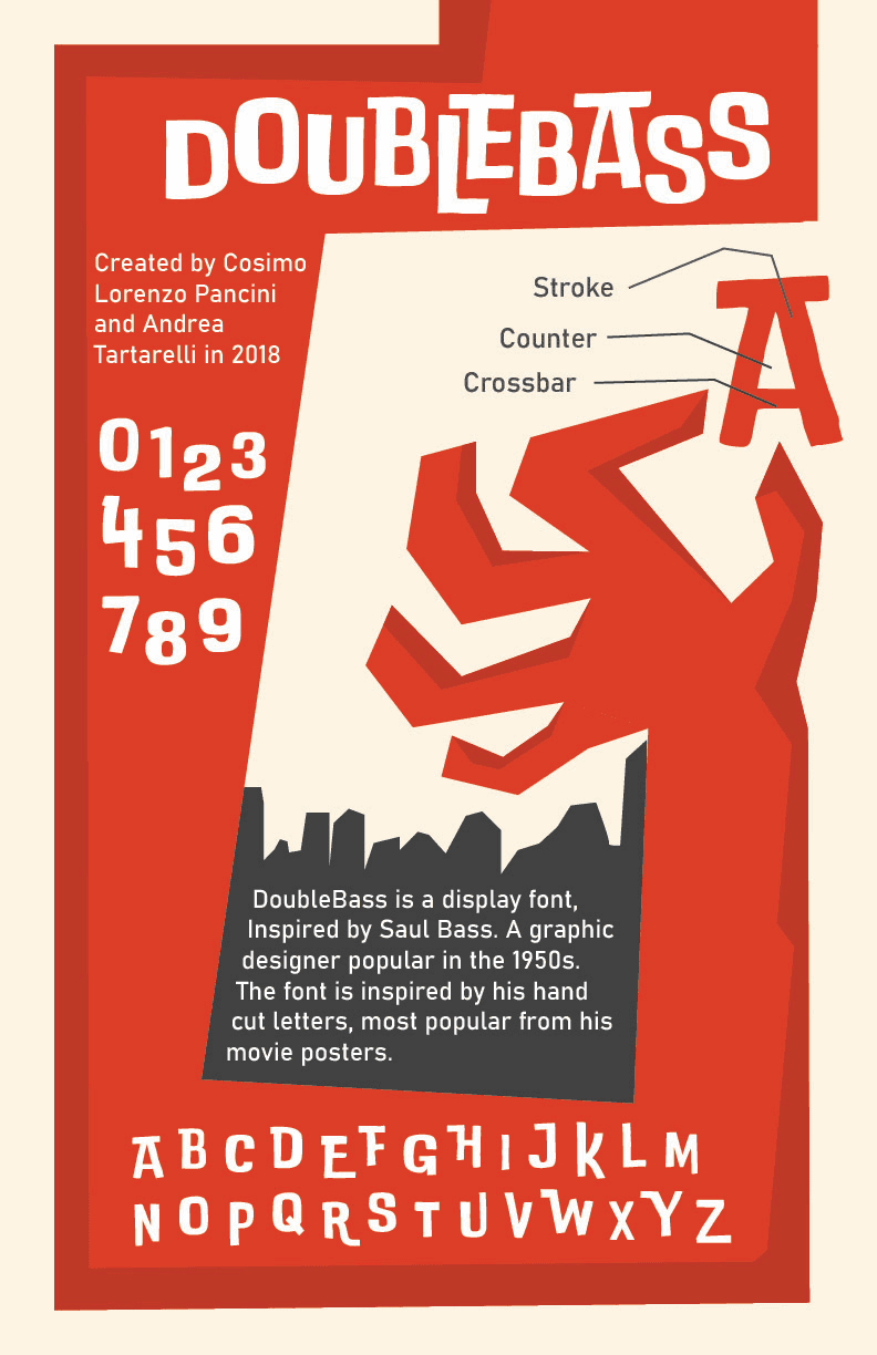 For the Doublebass poster, I wanted to create a poster inspired by Saul Bass and film posters. After researching, I developed my concept to be fully unified and tie back to the history of both Saul Bass and the